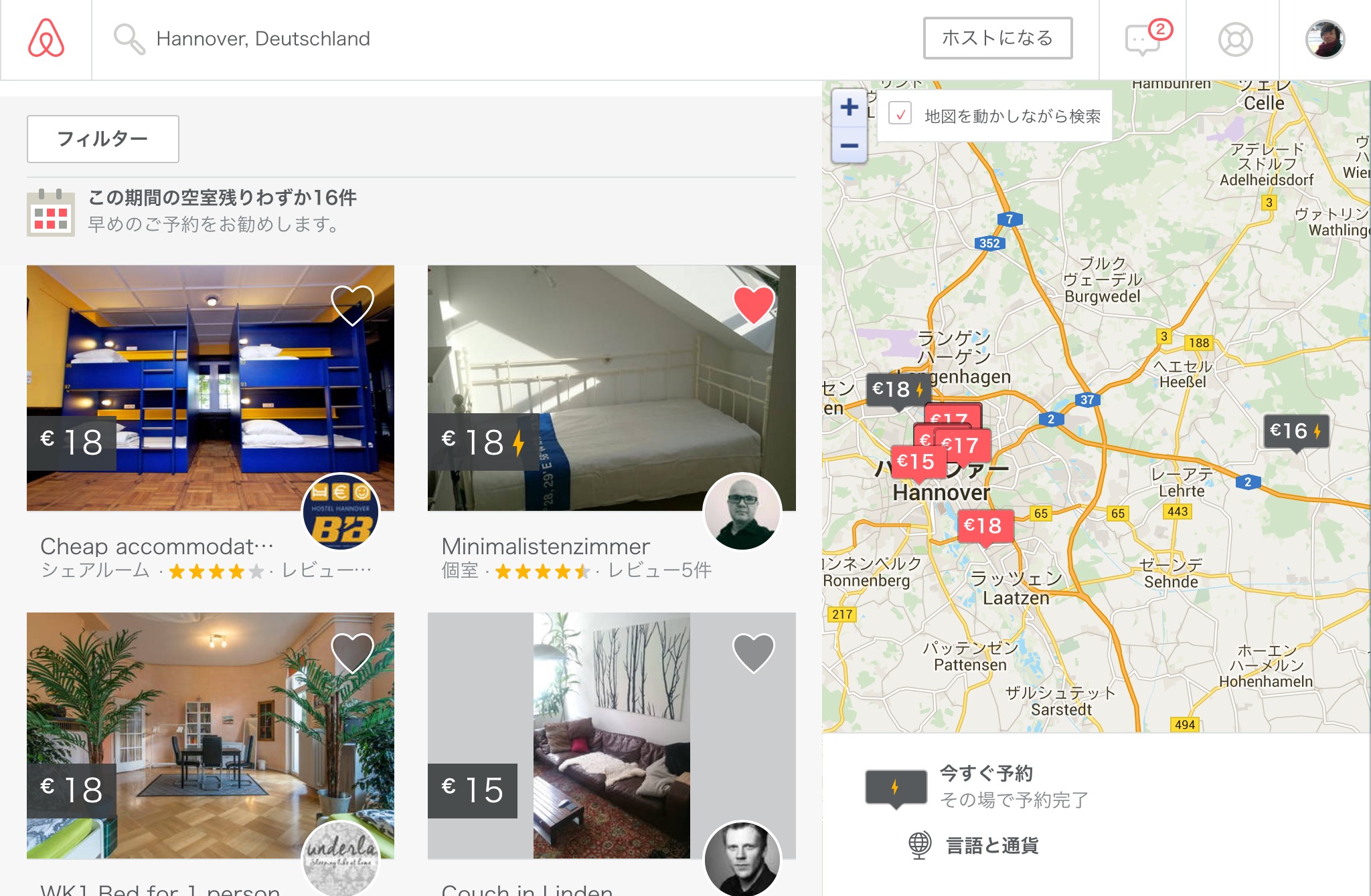 Airbnbを利用し、ハノーファーでは1人で1泊に滞在で、