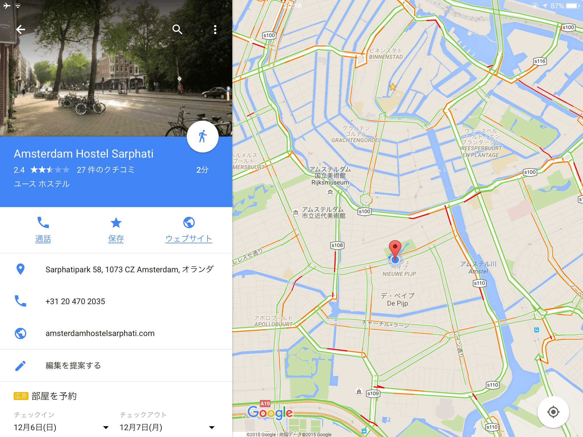 アムステルダムの中心から若干離れてはいる。