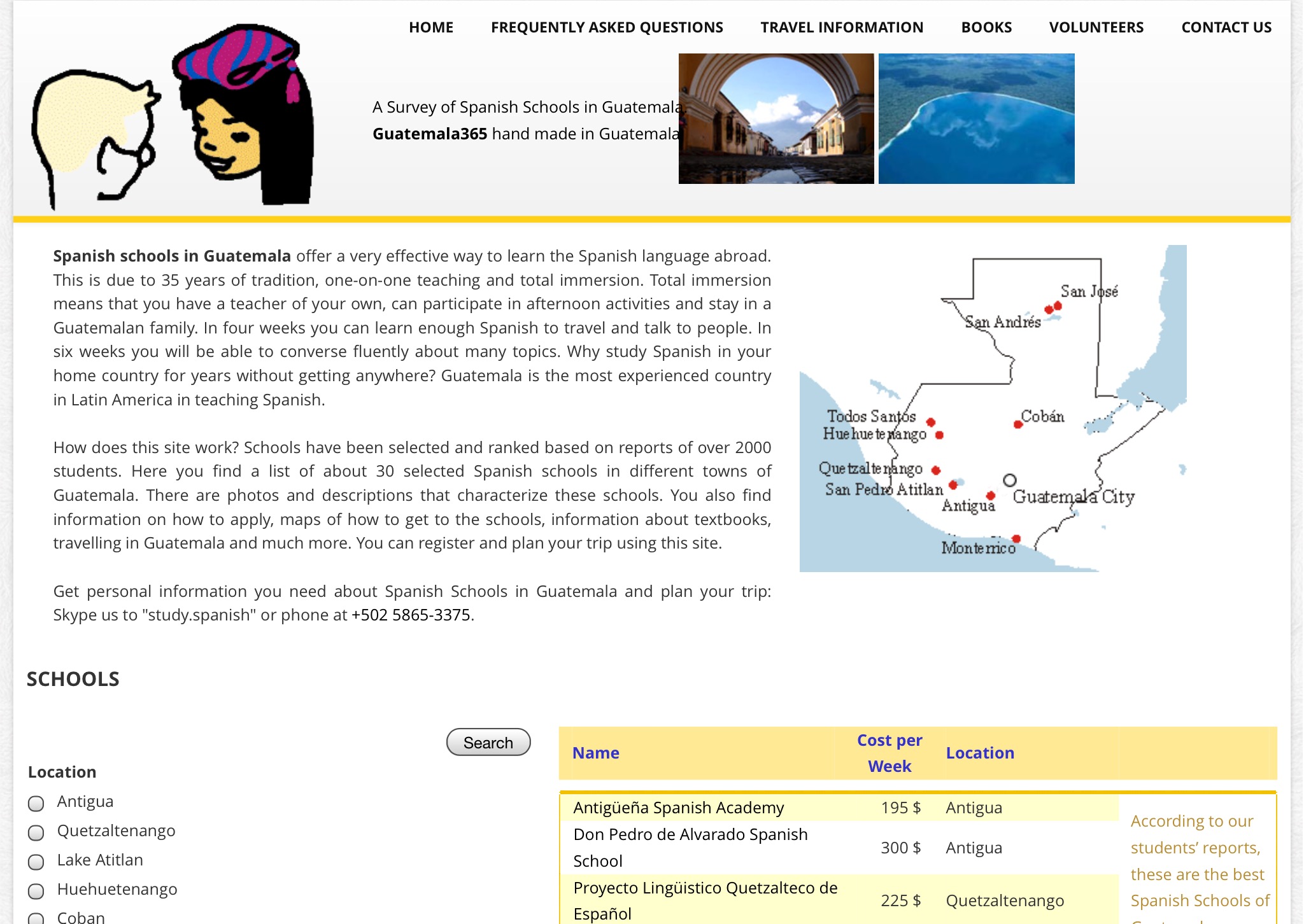 グアテマラの都市ごとのスペイン語学校が網羅されていて