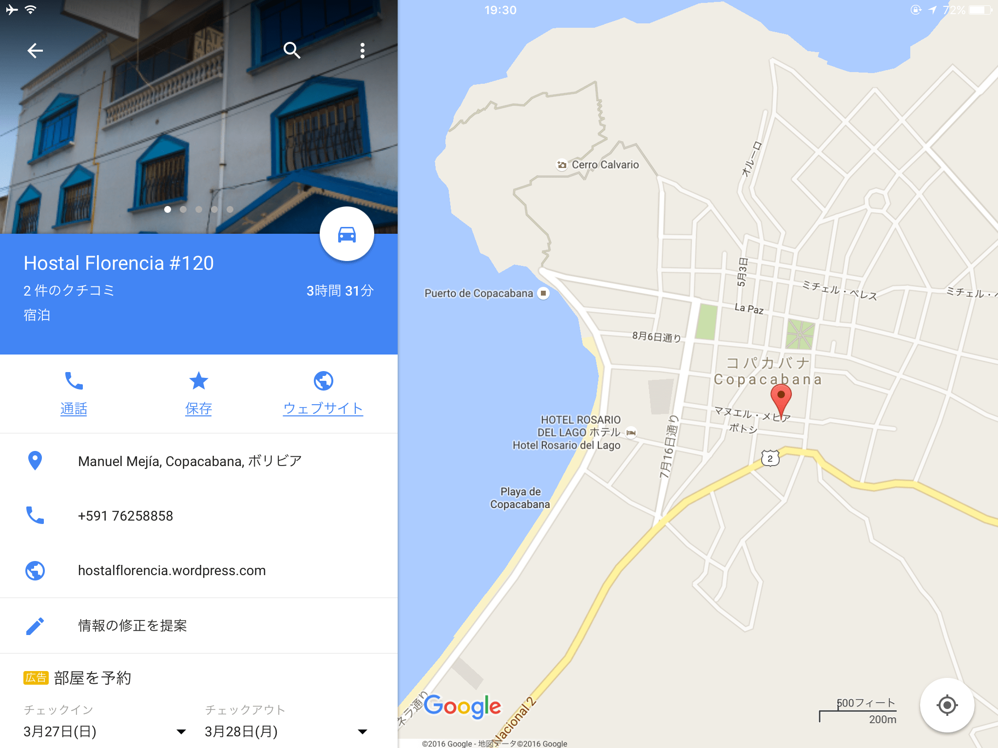 ホームページ https://hostalflorencia.wordpress.com
