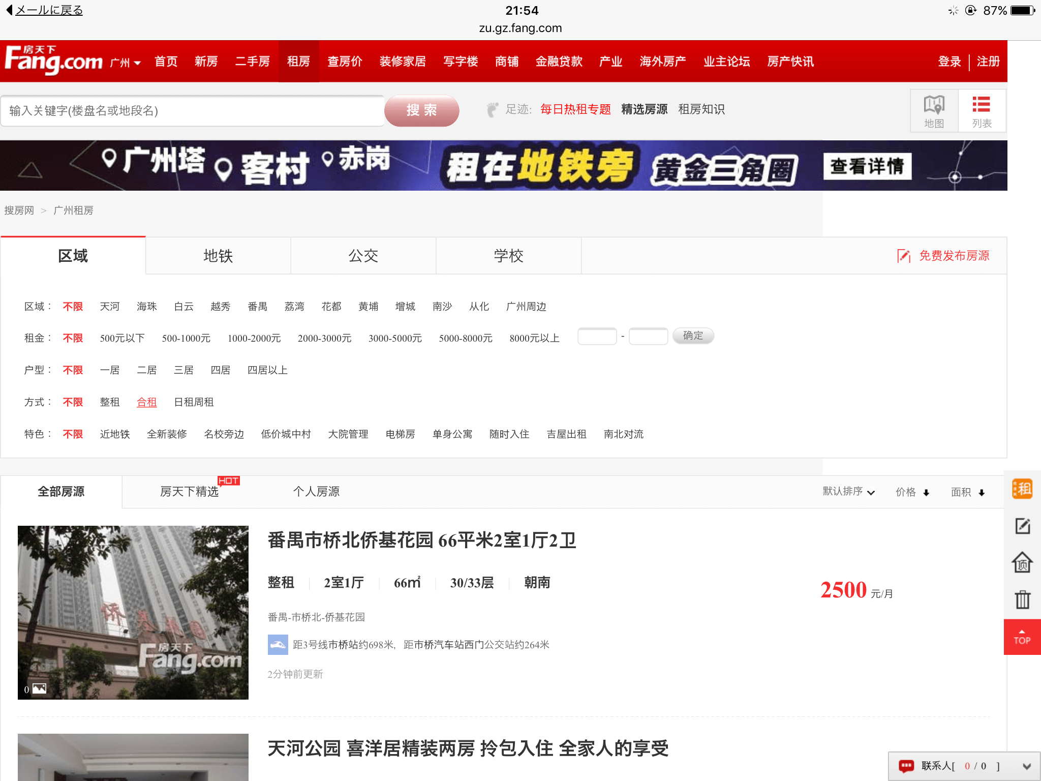 中国広州での住まい・シェアハウス探しにおすすめのサイト