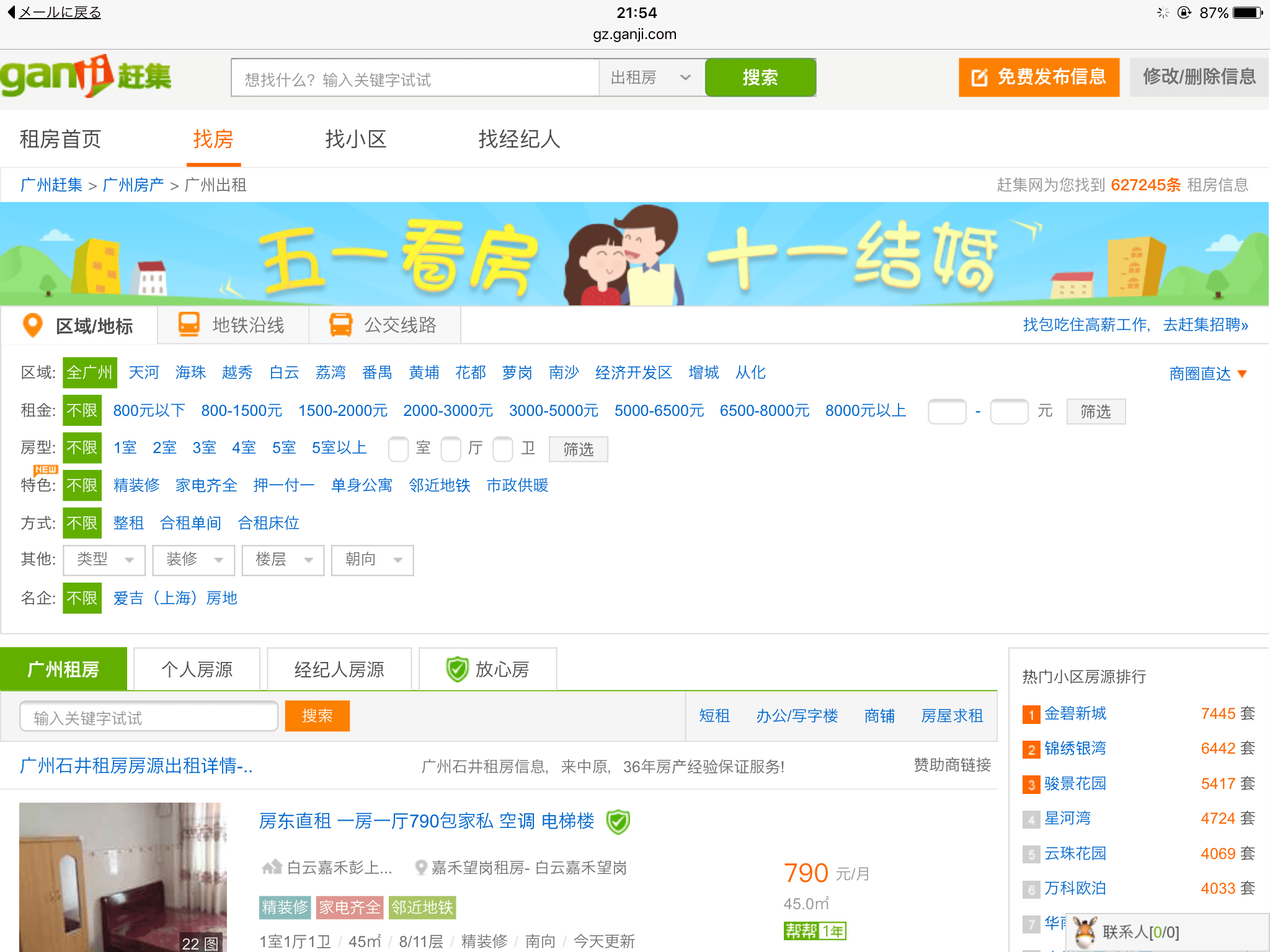 次は日系ではなくて中国系の住宅サイトで探すという方法。