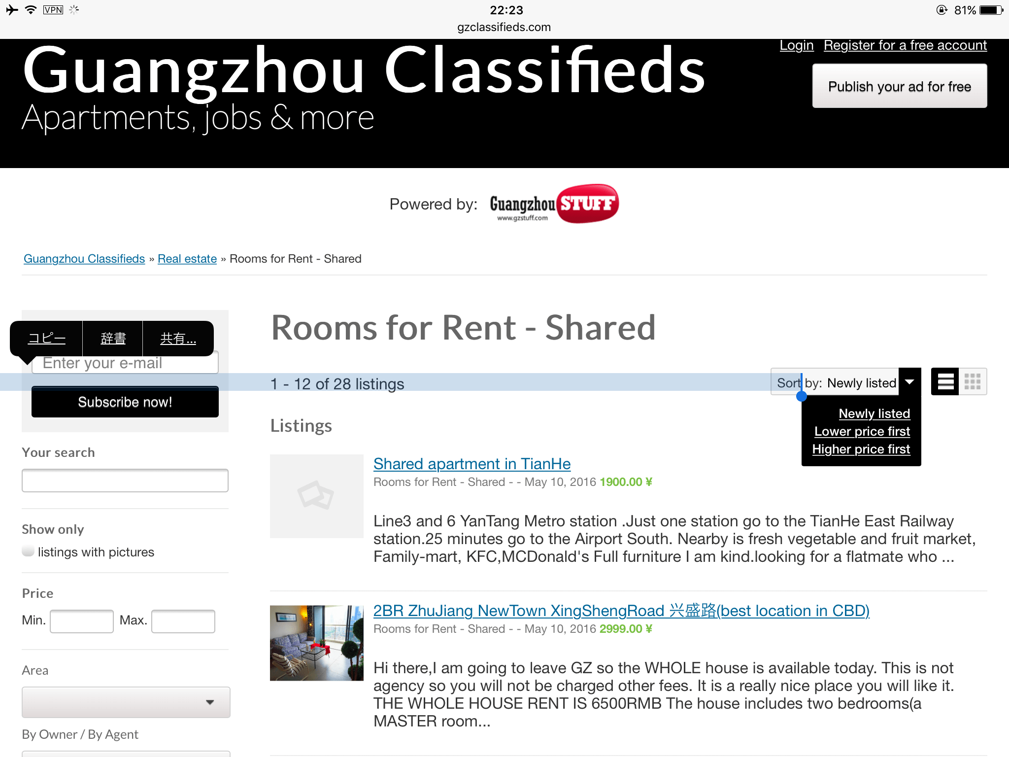 今回自分が広州で家を探す際に利用したのがGuangzhou Classified