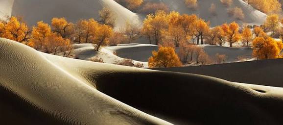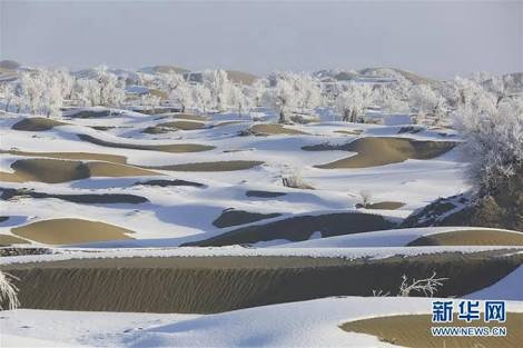 砂漠に雪が積もっていたり木が生えていたりと