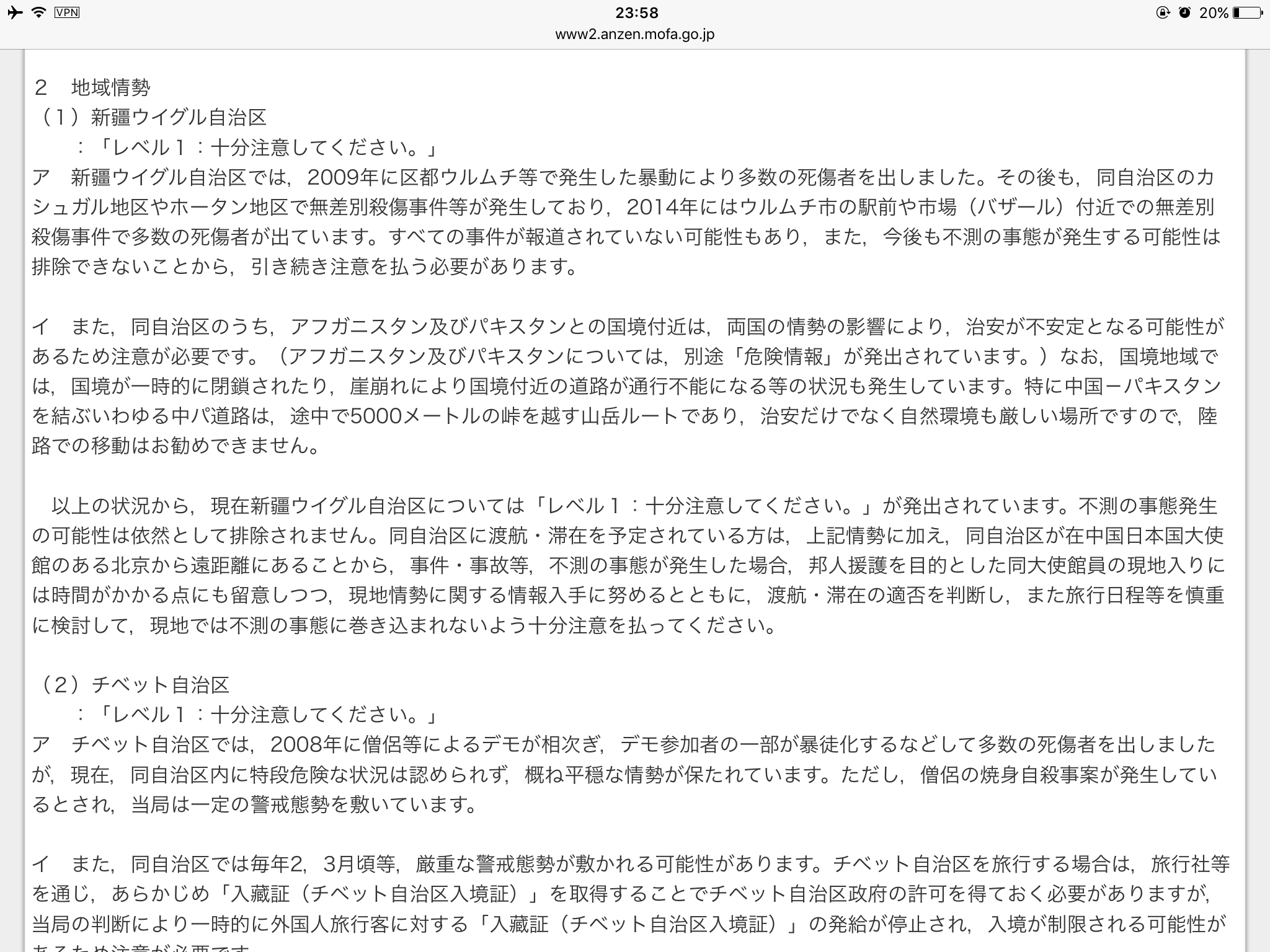 ちなみに外務省の安全ページを見てみると